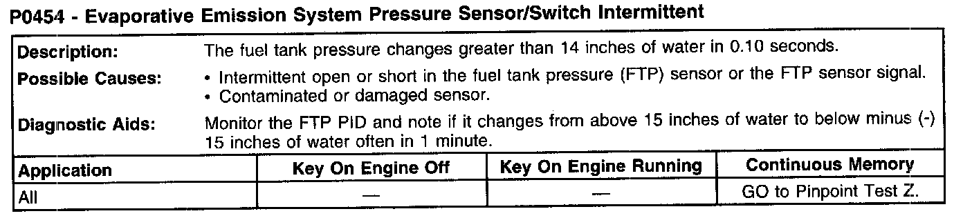 P0454 - Evaporative Emission System Pressure Sensor/Switch Intermittent: