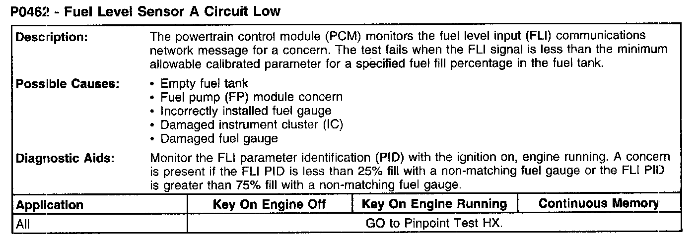 P0462 - Fuel Level Sensor A Circuit Low: