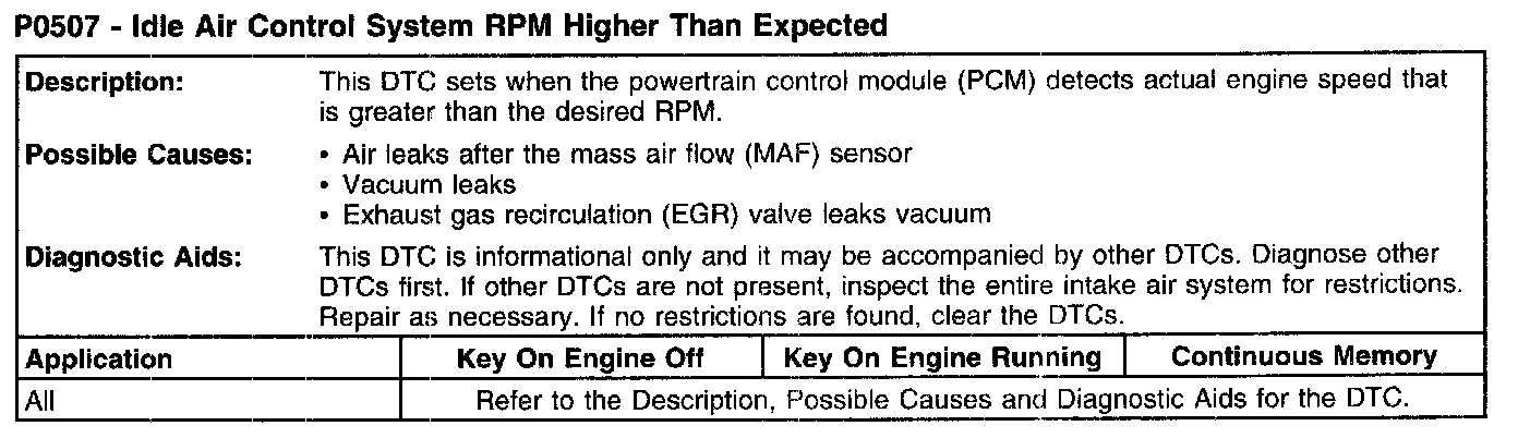 P0507 - Idle Air Control System RPM Higher Than Expected: