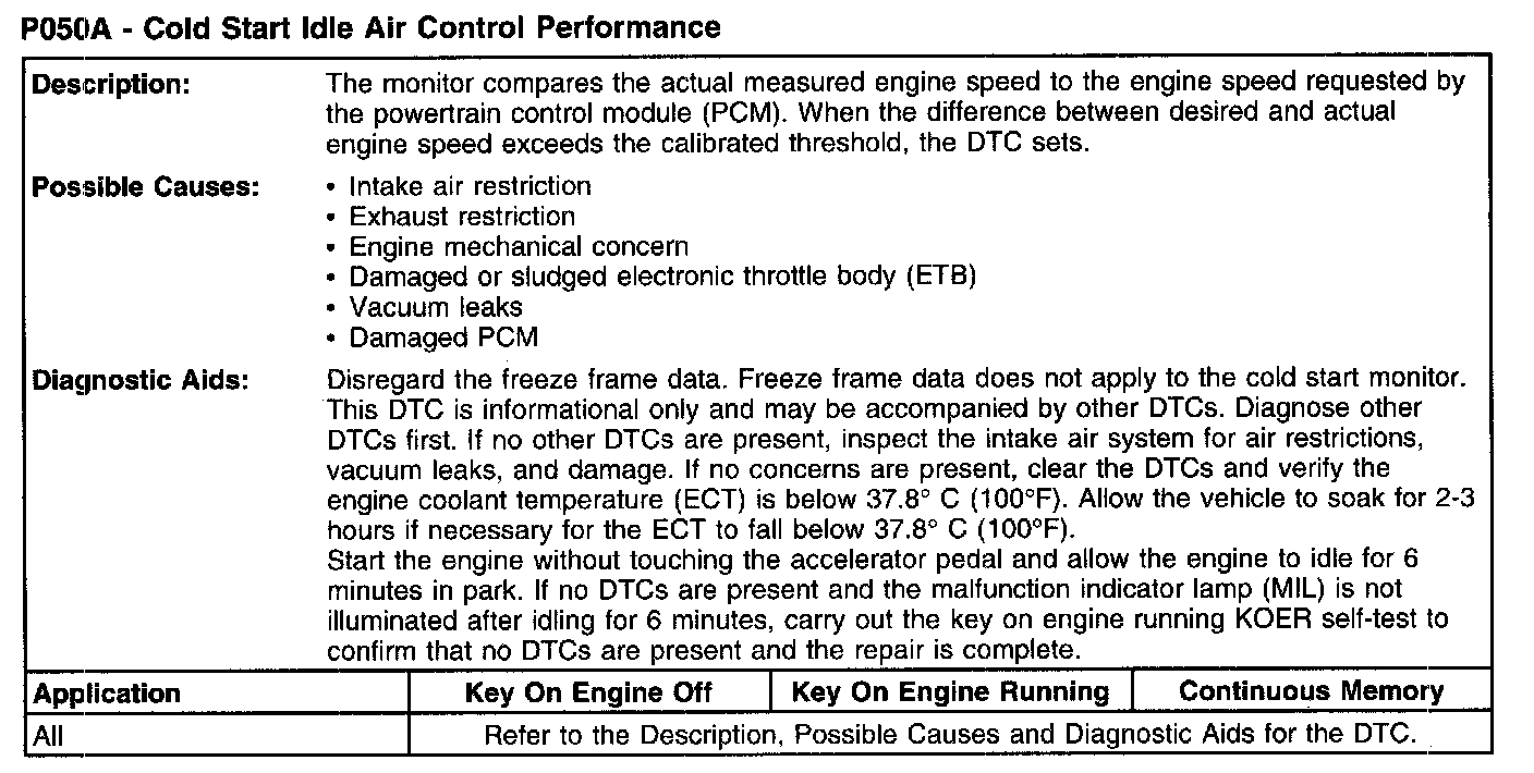 P050A - Cold Start Idle Air Control Performance: