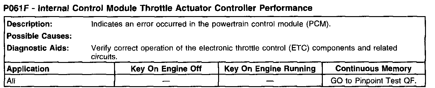 P061F - Internal Control Module Throttle Actuator Controller Performance: