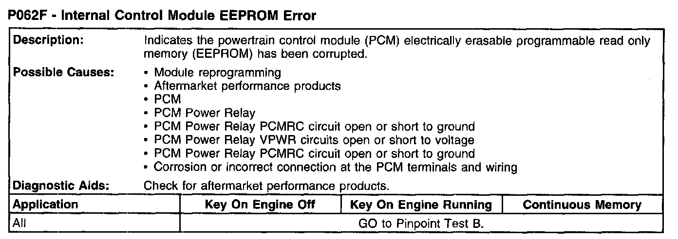 P062F - Internal Control Module EEPROM Error: