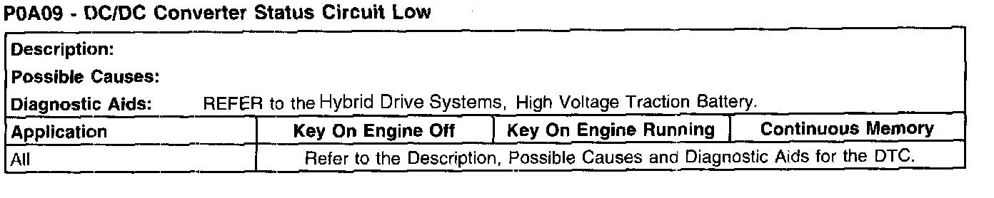 P0A09 - DC/DC Converter Status Circuit Low: