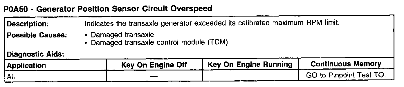 P0A50 - Generator Position Sensor Circuit Overspeed: