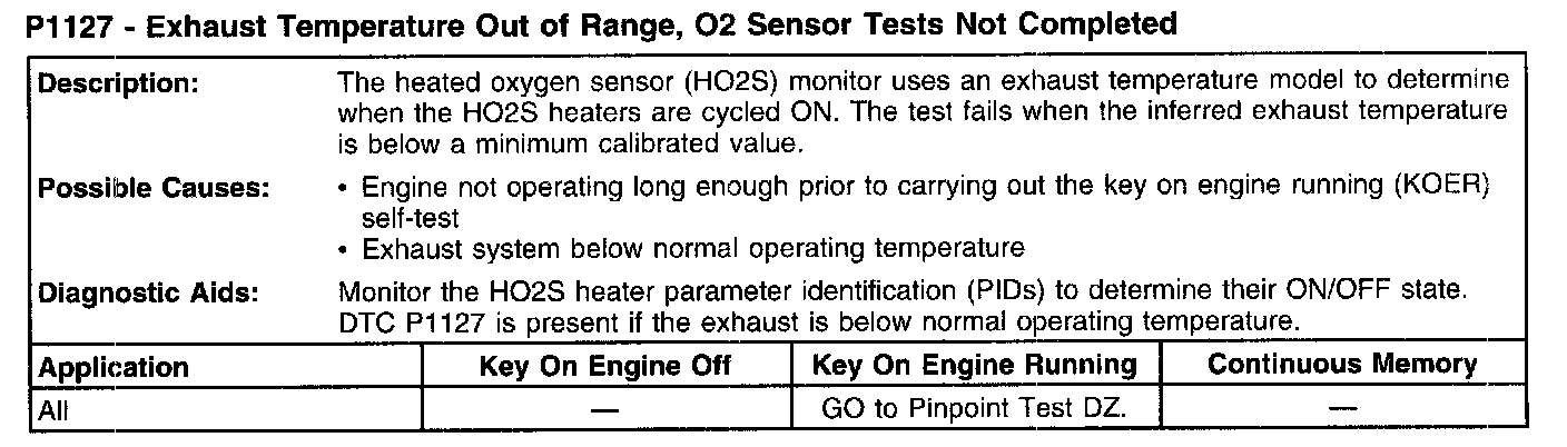P1127 - Exhaust Temperature Out Of Range, O2 Sensor Tests Not Completed: