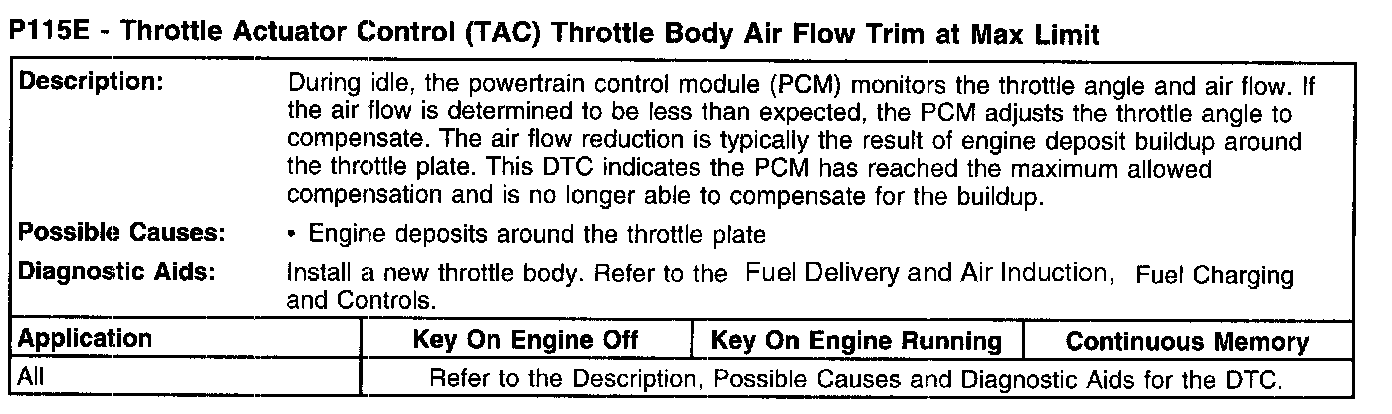 P115E - Throttle Actuator Control (TAC) Throttle Body Air Flow Trim At Max Limit: