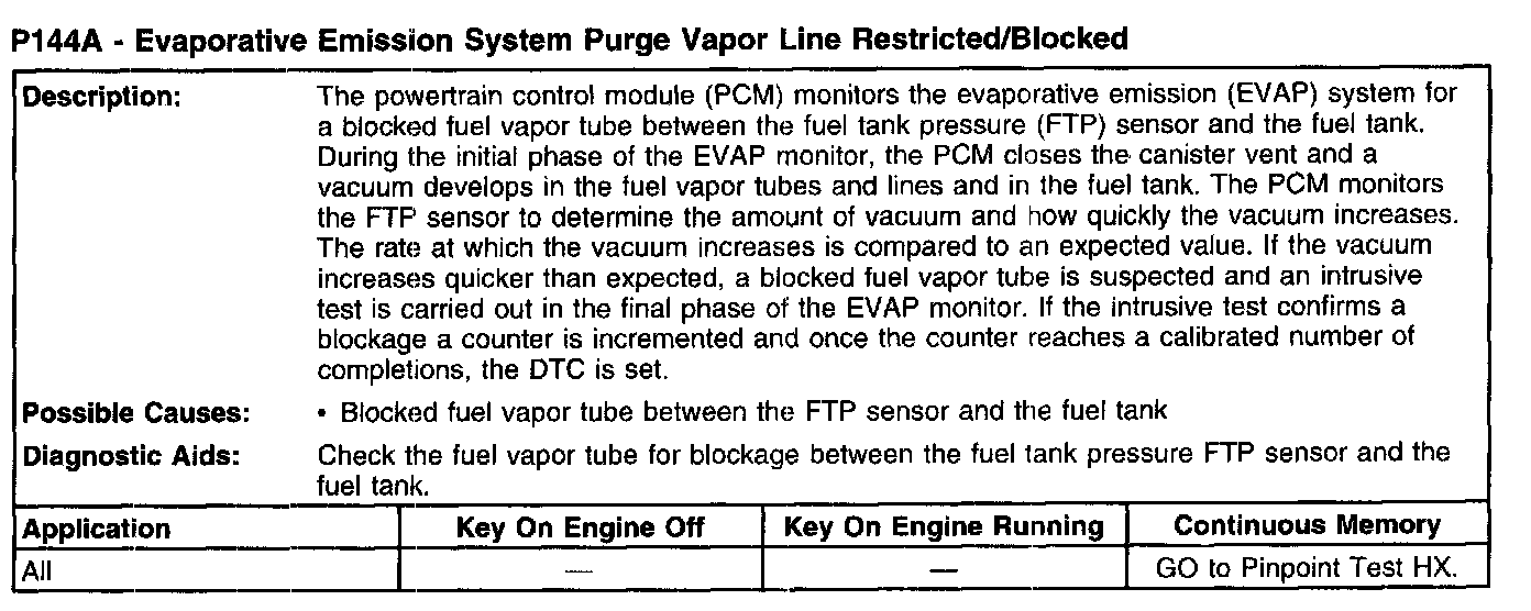 P144A - Evaporative Emission System Purge Vapor Line Restricted/Blocked: