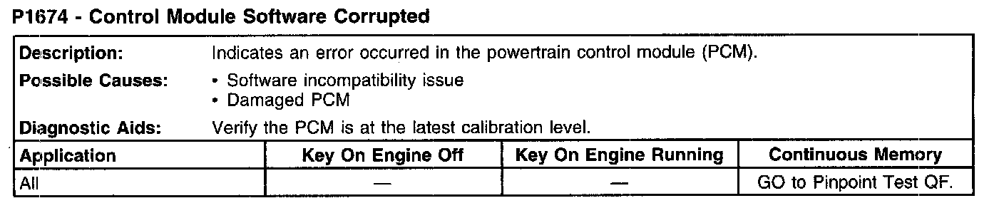 P1674 - Control Module Software Corrupted: