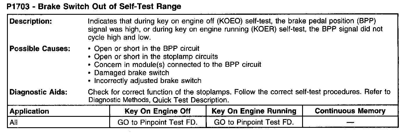 P1703 - Brake Switch Out Of Self-Test Range: