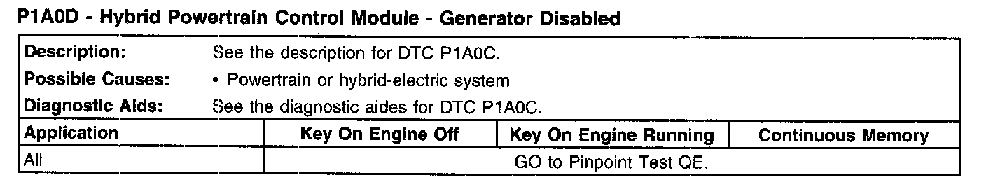 P1A0D - Hybrid Powertrain Control Module - Generator Disabled:
