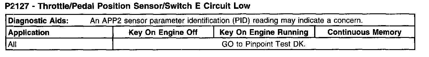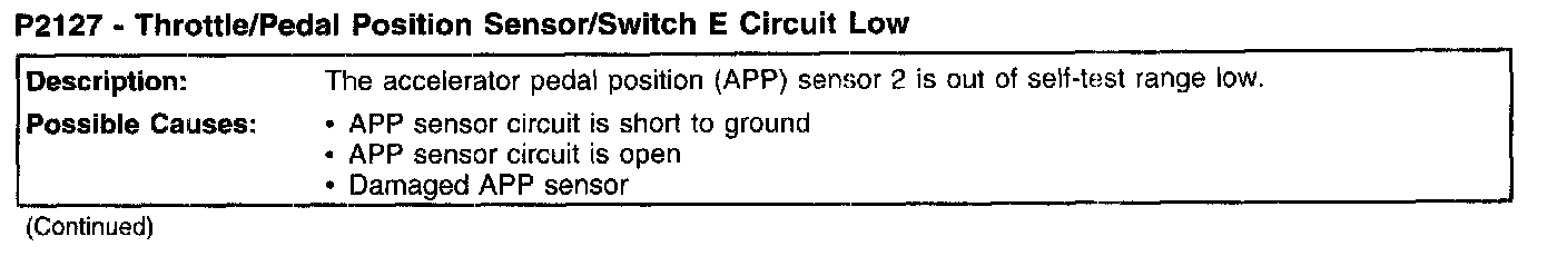 P2127 - Throttle/Pedal Position Sensor/Switch E Circuit Low (Part 2):