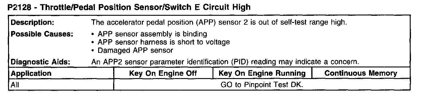 P2128 - Throttle/Pedal Position Sensor/Switch E Circuit High: