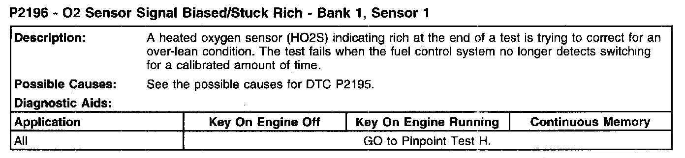 P2196 - O2 Sensor Signal Biased/Stuck Rich - Bank 1, Sensor 1: