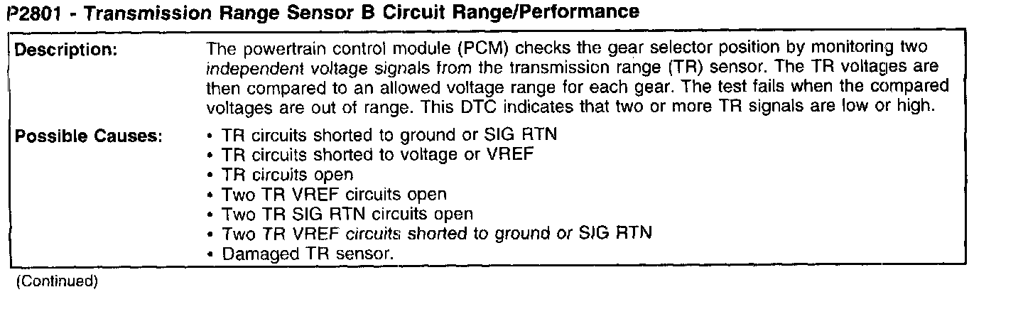 P2801 - Transmission Range Sensor B Circuit Range/Performance (Part 1):