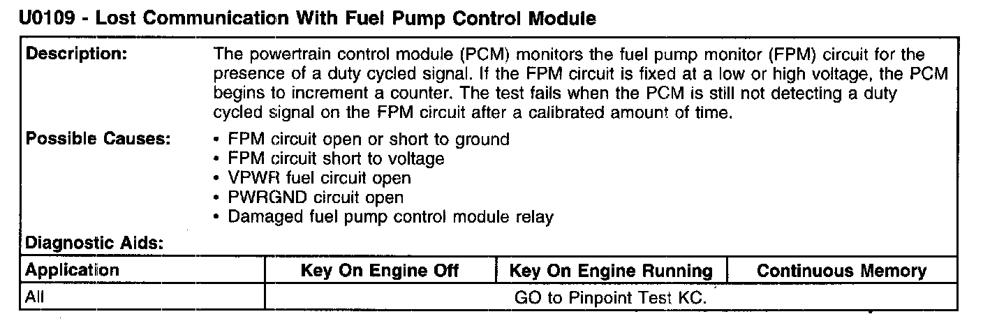 U0109 - Lost Communication With Fuel Pump Control Module: