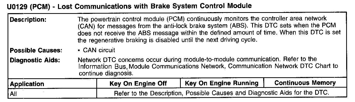 U0129 (PCM) - Lost Communications With Brake System Control Module: