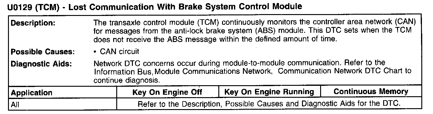 U0129 (TCM) - Lost Communication With Brake System Control Module: