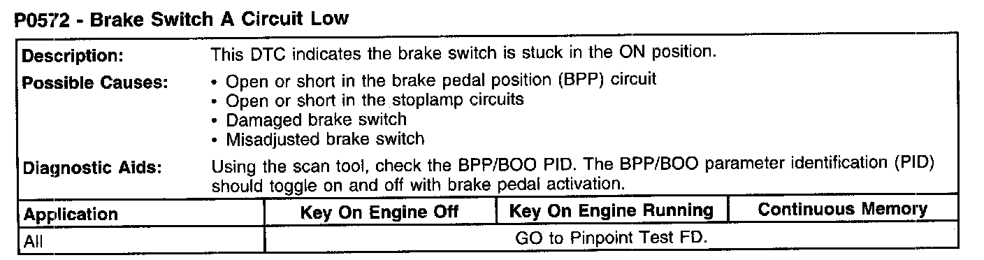 P0572 - Brake Switch A Circuit Low: