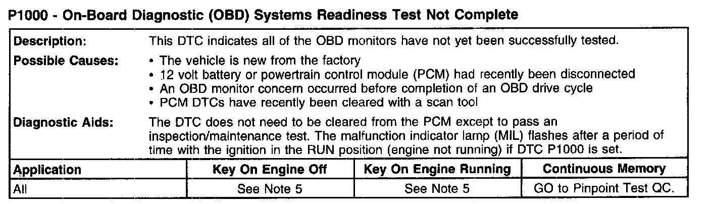P1000 - On-Board Diagnostic (OBD) Systems Readiness Test Not Complete: