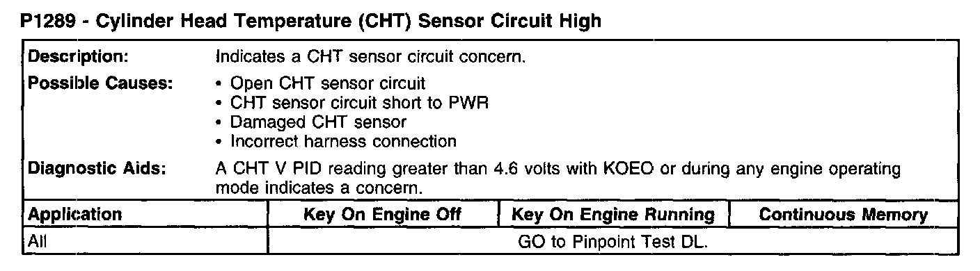 P1289 - Cylinder Head Temperature (CHT) Sensor Circuit High: