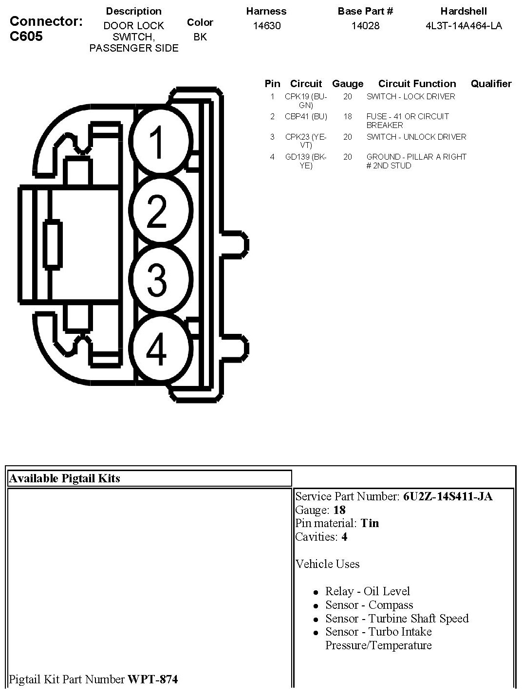 Door Lock Switch, Passenger Side
