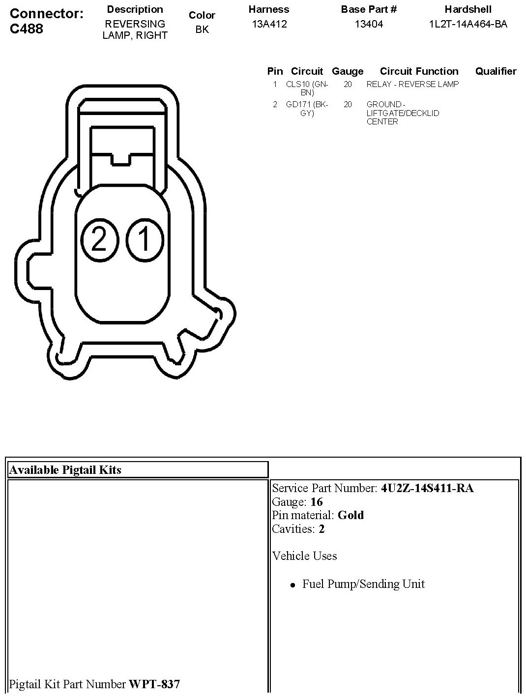 Reversing Lamp, Right