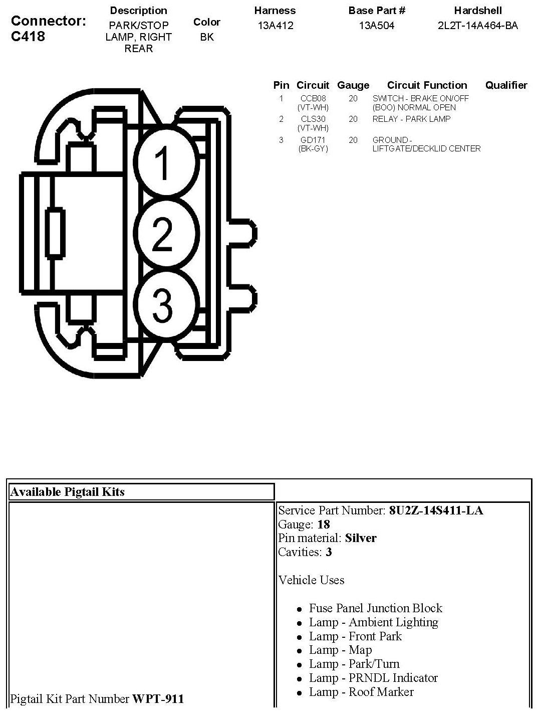 Park/Stop Lamp, Right Rear