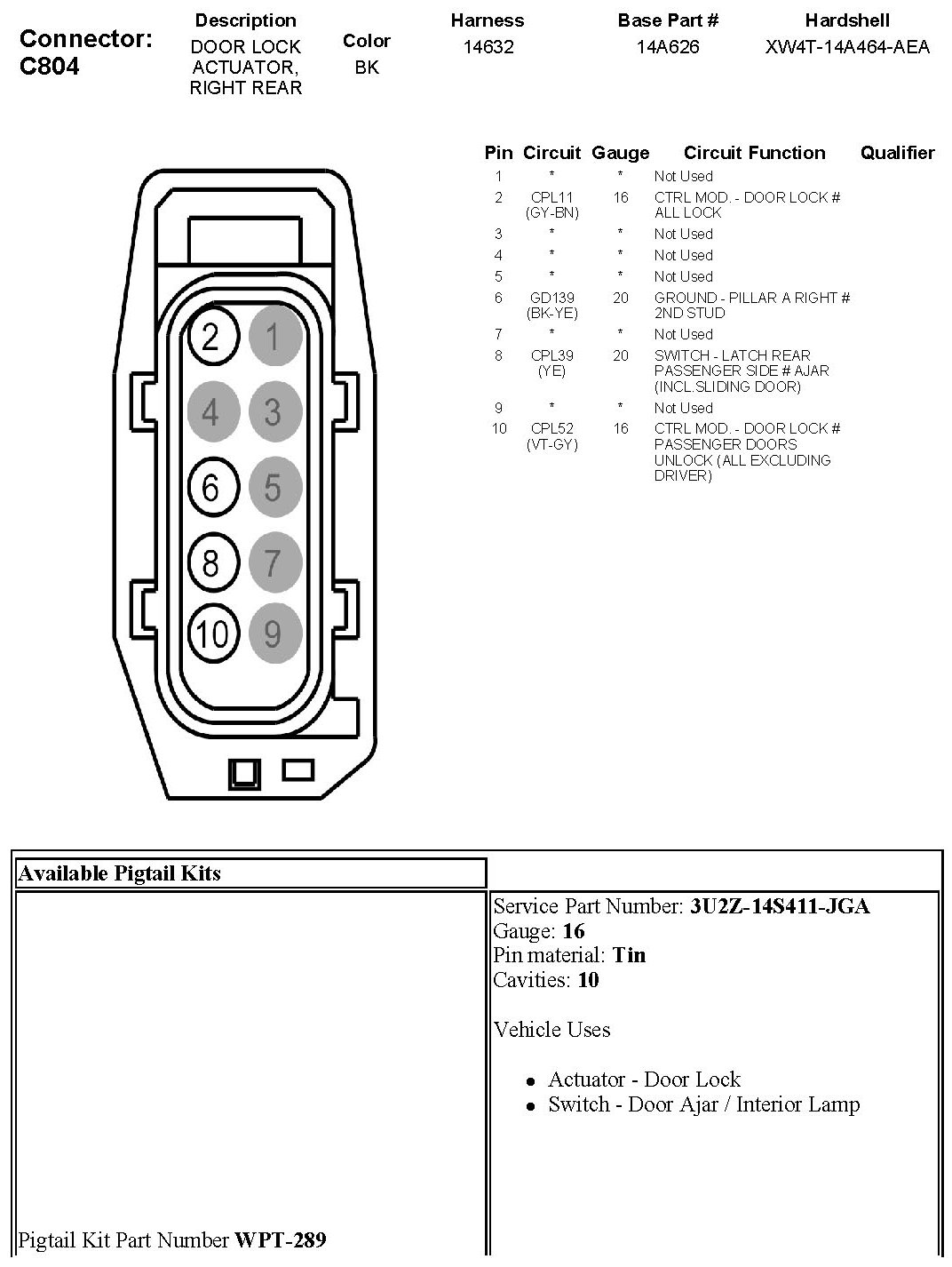 Door Lock Actuator, Right Rear