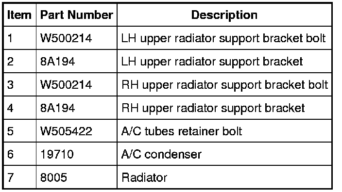 7. Remove the 2 bolts from the upper radiator support brackets and position the radiator towards the engine and remove the 2 upper radiator support bracket from the radiator.