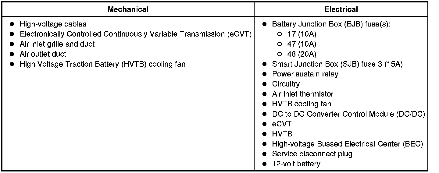 WARNING: To prevent the risk of high-voltage shock, always follow precisely all warnings and service instructions, including instructions to depower the system. The high-voltage hybrid system utilizes approximately 300 volts DC, provided through high-voltage cables to its components and modules. The high-voltage cables and wiring are identified by orange harness tape or orange wire covering. All high-voltage components are marked with high-voltage warning labels with a high-voltage symbol. Failure to follow these instructions may result in serious personal injury or death.