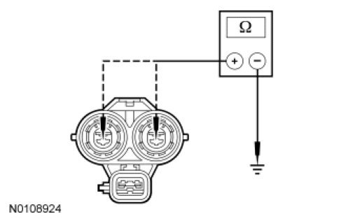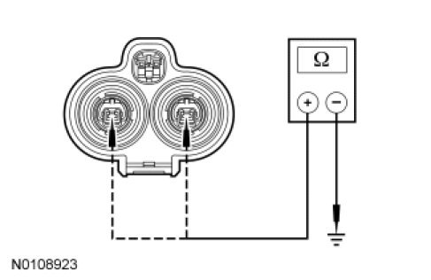 - With the service disconnect plug removed, measure the resistance between ACCM C1469B pin 1, component side and ground; and between ACCM C1469B pin 2, component side and ground.
