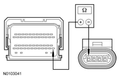 - With the service disconnect plug removed, measure the resistance between high-voltage BEC C4236A-1, circuit HYT04 (OG/BK), harness side and ground; and between high-voltage BEC C4236A-2, circuit HYT03 (OG/WH), harness side and ground.