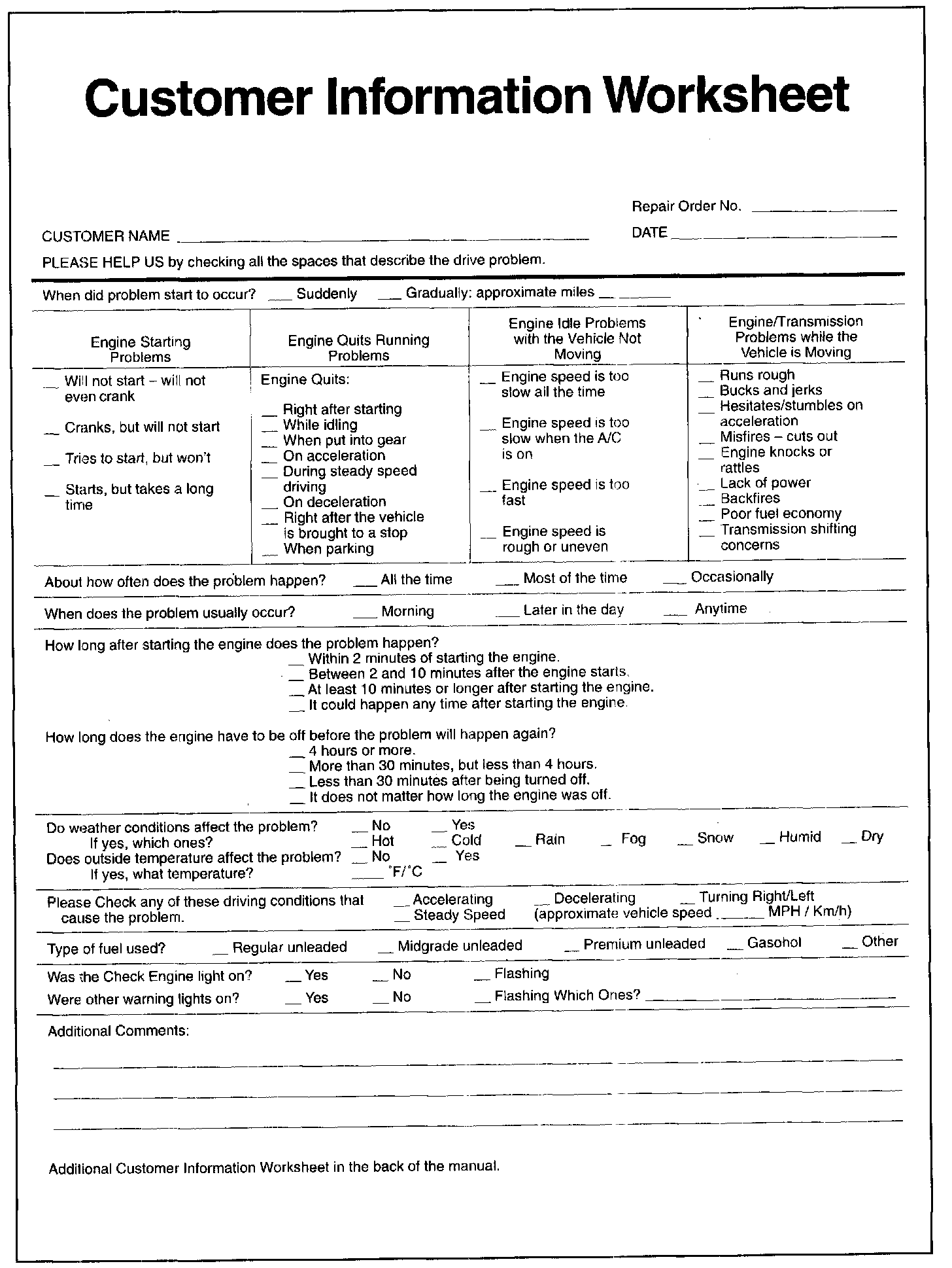 Customer Information Worksheet