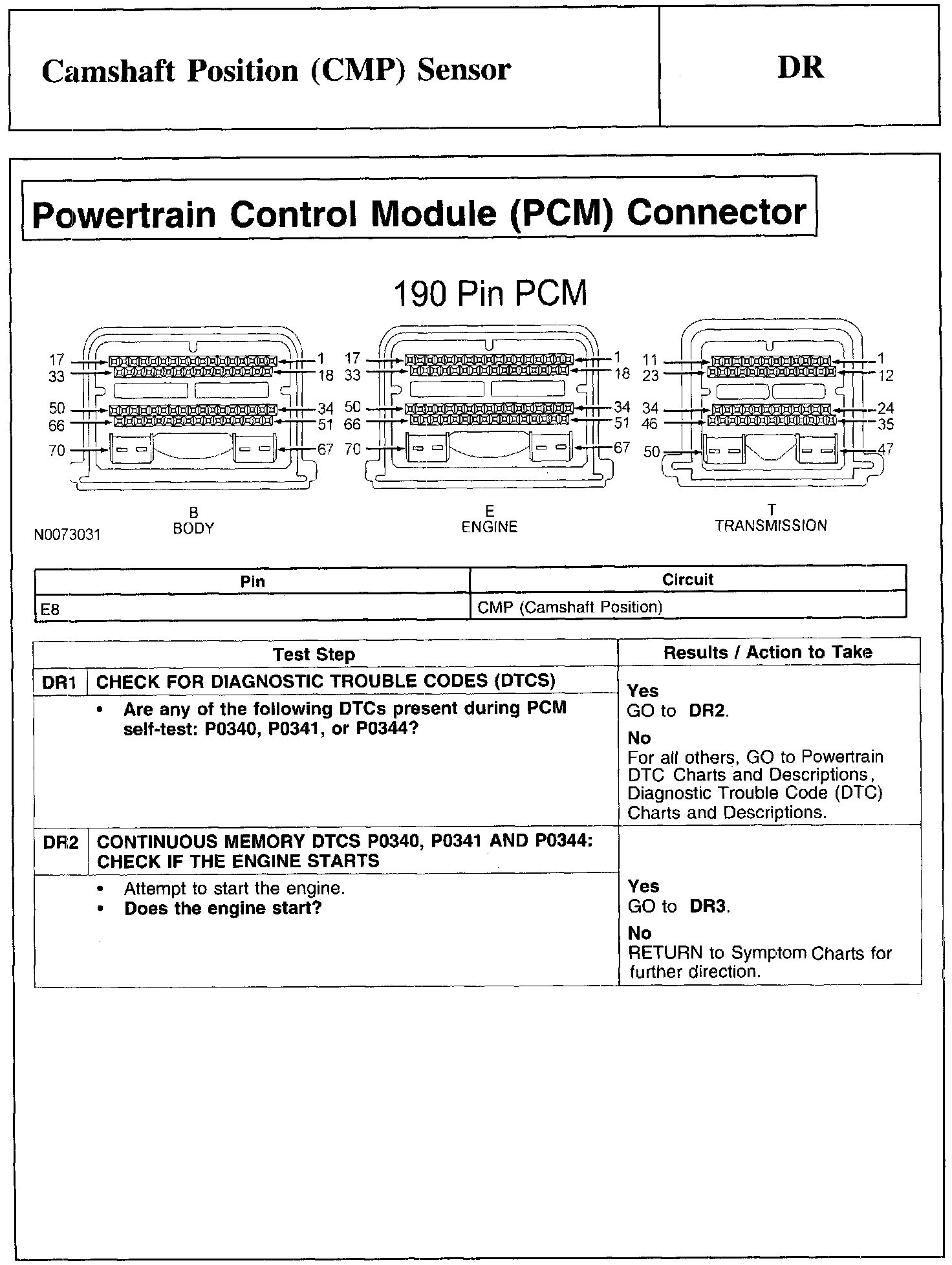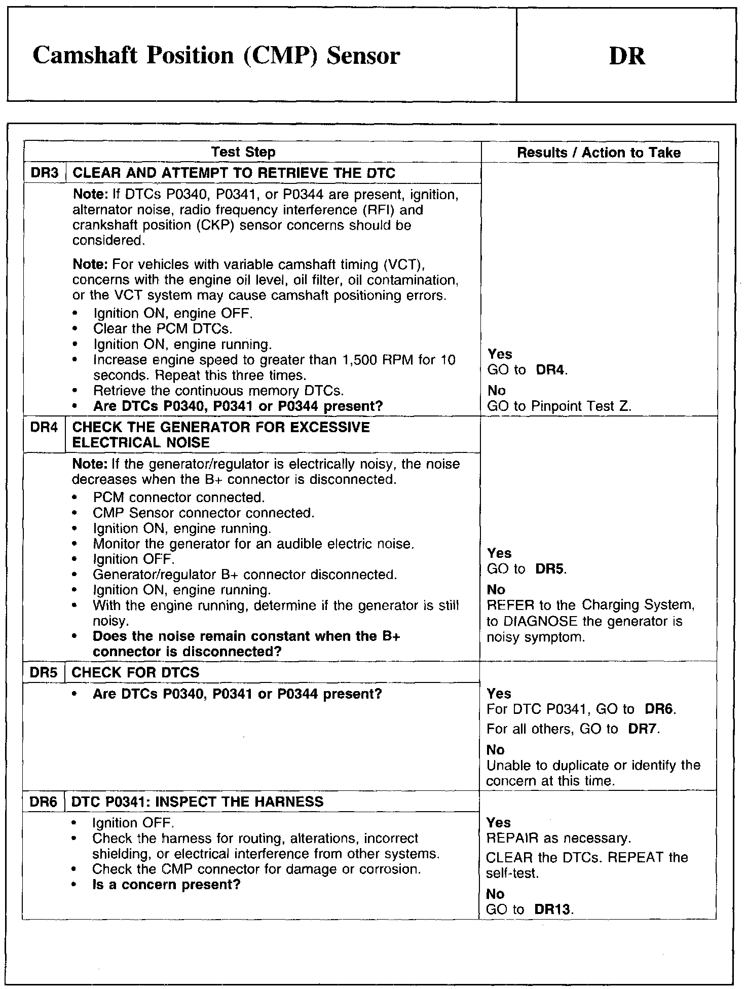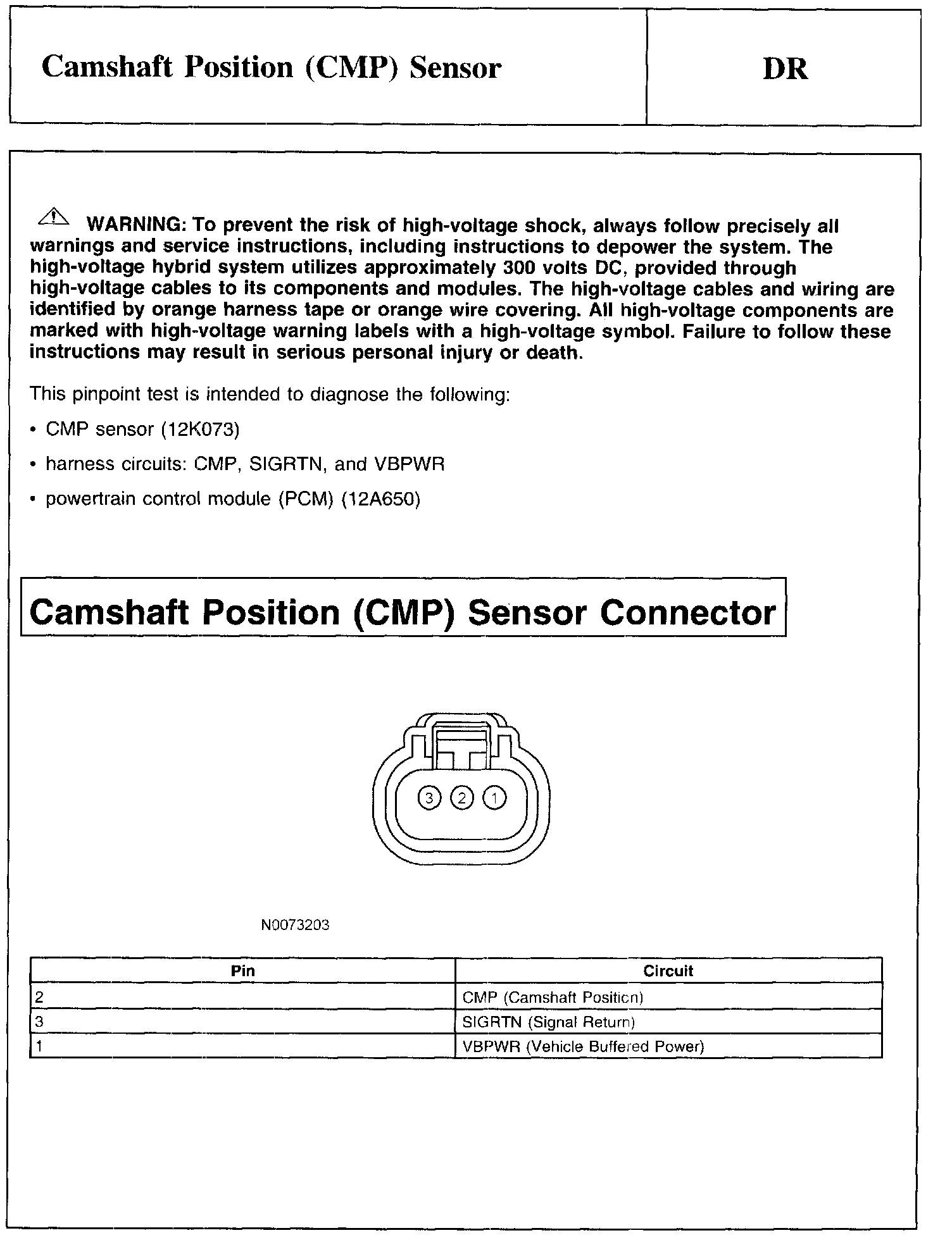 PINPOINT TEST DR: CAMSHAFT POSITION (CMP) SENSOR