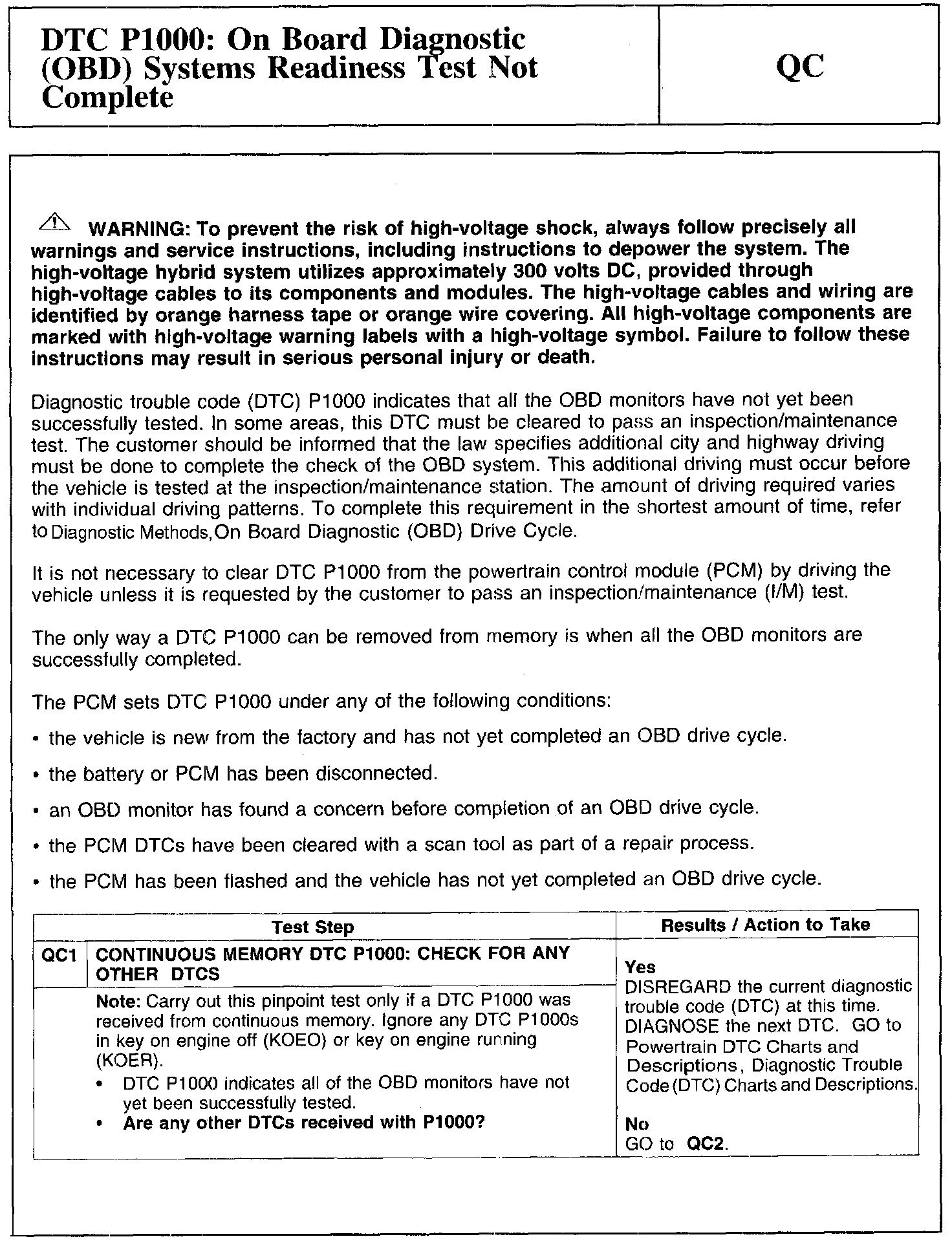 Test QC: DTC P1000: On Board Diagnostic (OBD) Systems Readiness Test Not Complete