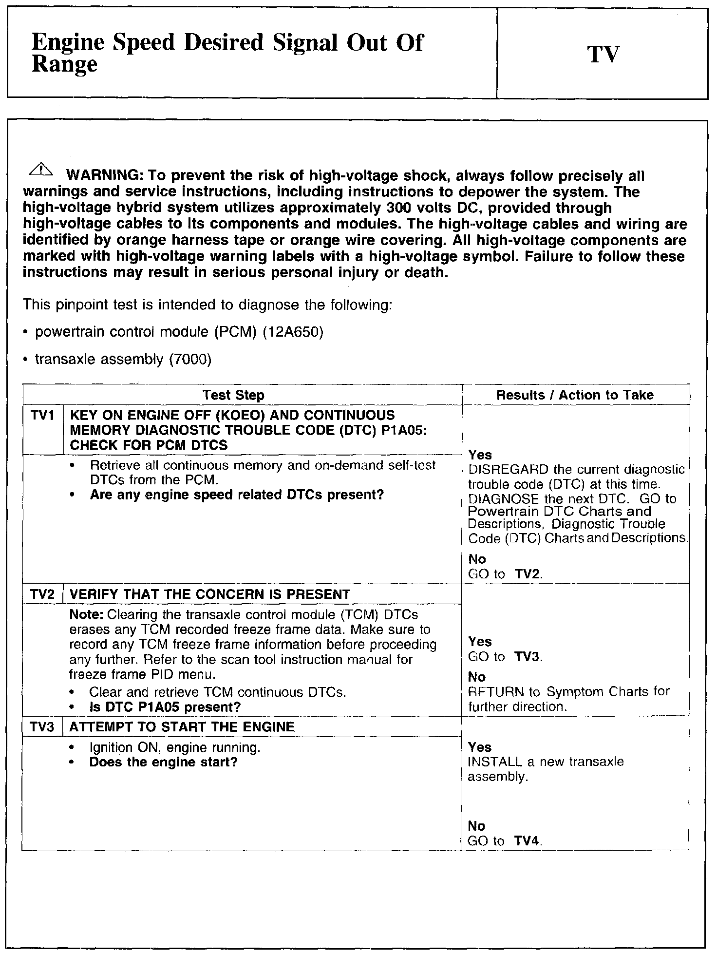 PINPOINT TEST TV: ENGINE SPEED DESIRED SIGNAL OUT OF RANGE