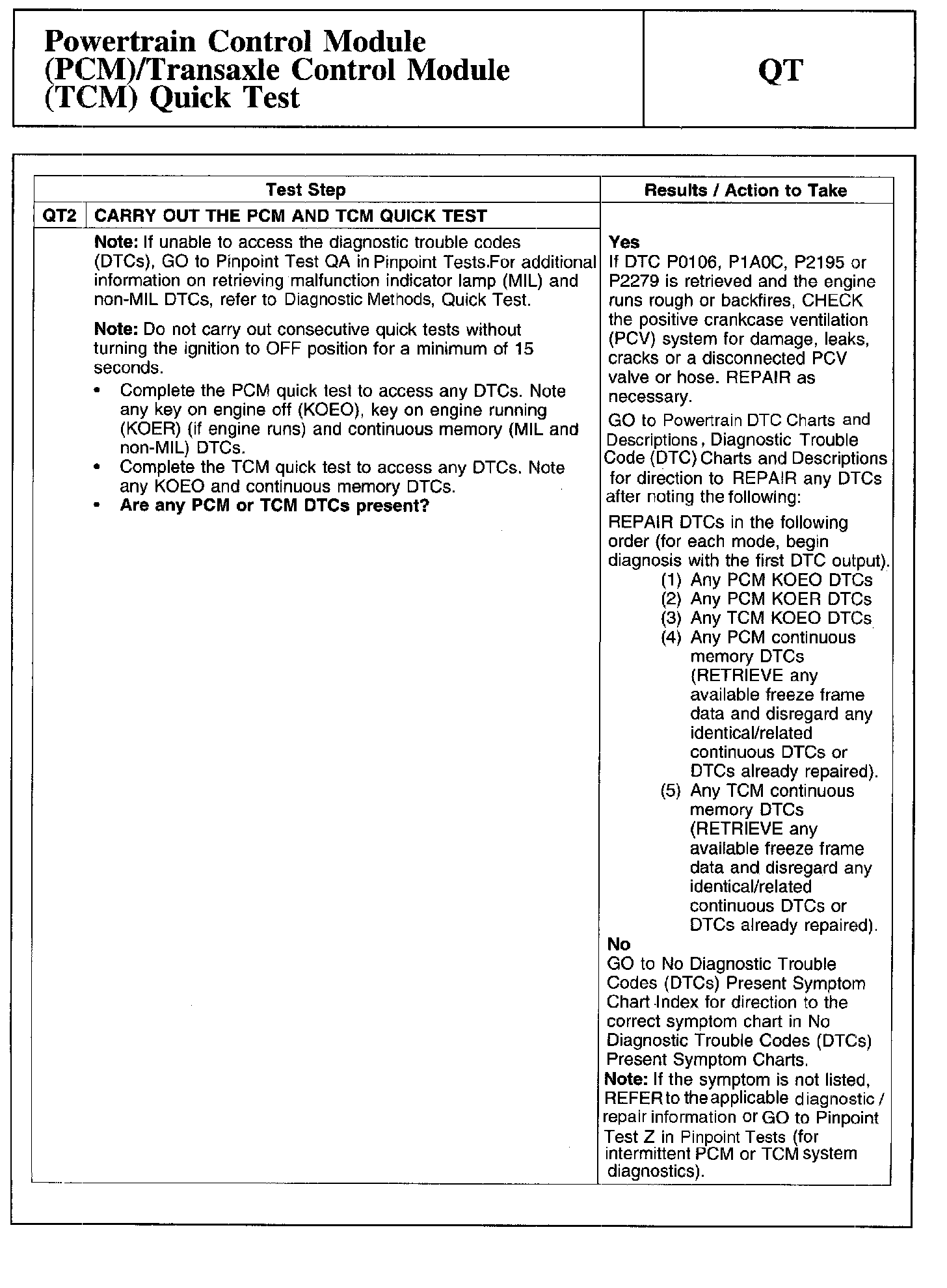 QT: Powertrain Control Module (PCM)/Transaxle Control Module (TCM) Quick Test