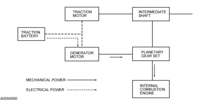 The electronically controlled CVT provides the engine cranking function to start or restart the internal combustion engine. When the PCM requests the engine cranking mode, the generator motor rapidly accelerates the engine speed up to about 950 RPM in about 0.3 seconds. When the engine speed reaches a calibrated speed the PCM commands the delivery of fuel and spark at the appropriate times.