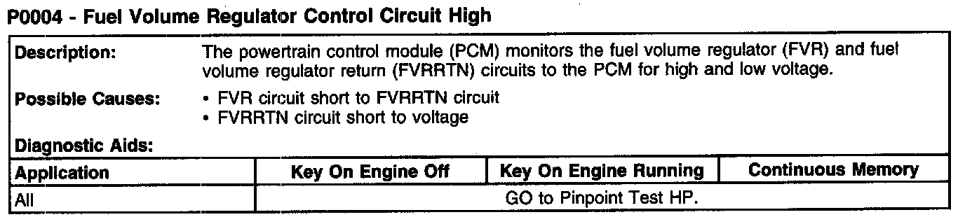 P0004 - Fuel Volume Regulator Control Circuit High: