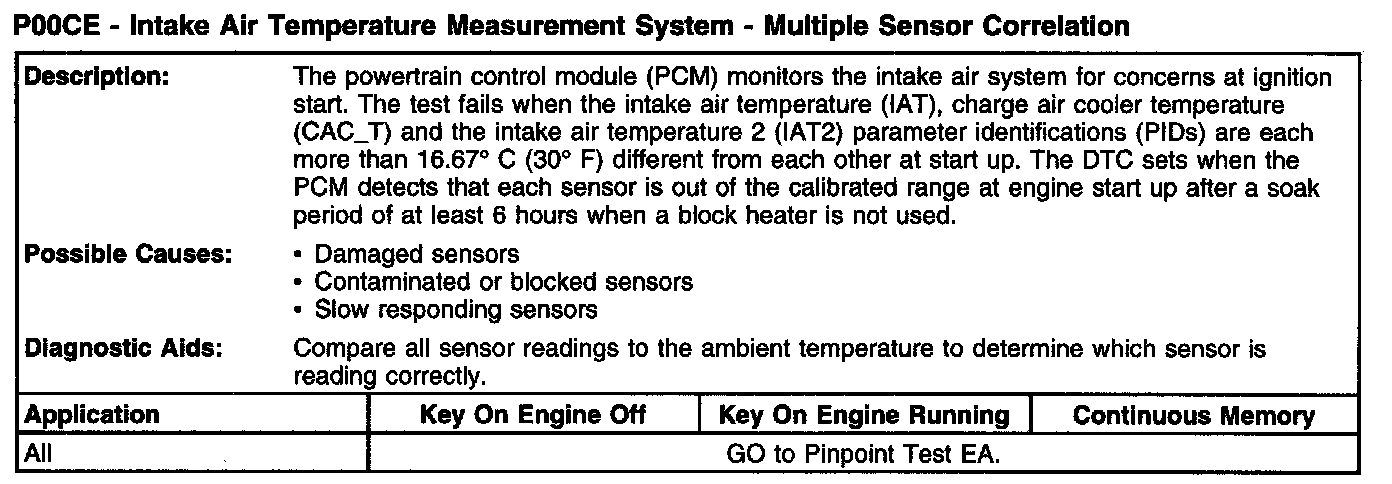 P00CE - Intake Air Temperature Measurement System - Multiple Sensor Correlation: