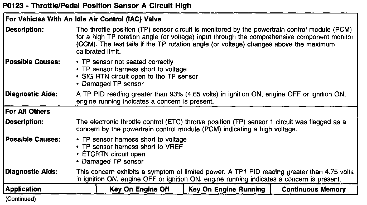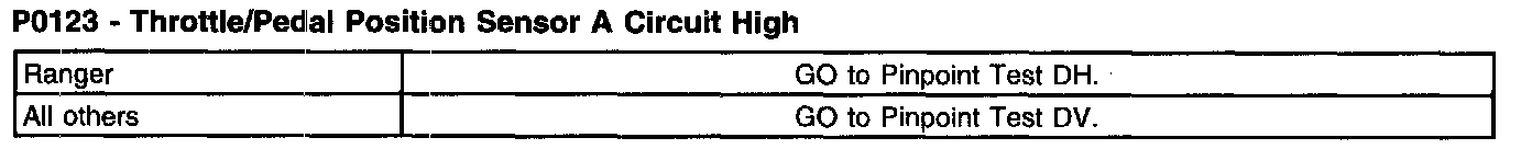 P0123 - Throttle/Pedal Position Sensor A Circuit High (Part 2):