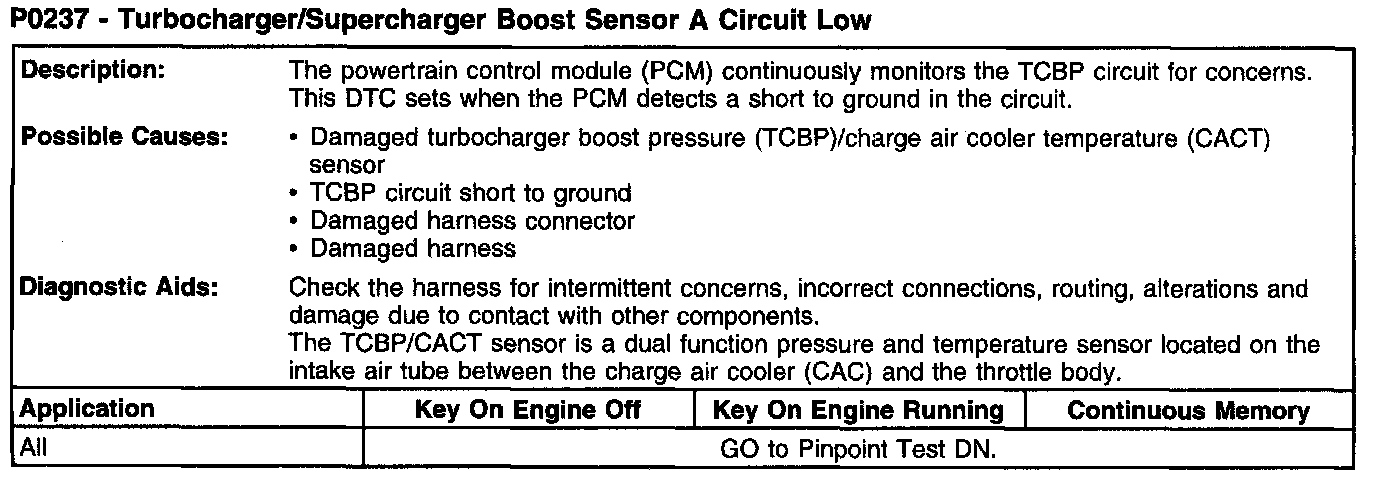 P0237 - Turbocharger/Supercharger Boost Sensor A Circuit Low:
