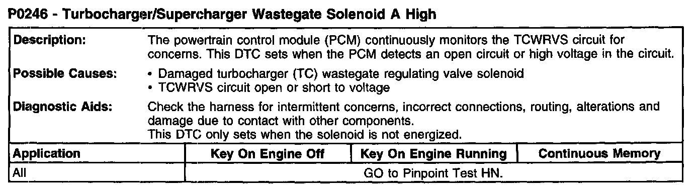 P0246 - Turbocharger/Supercharger Wastegate Solenoid A High: