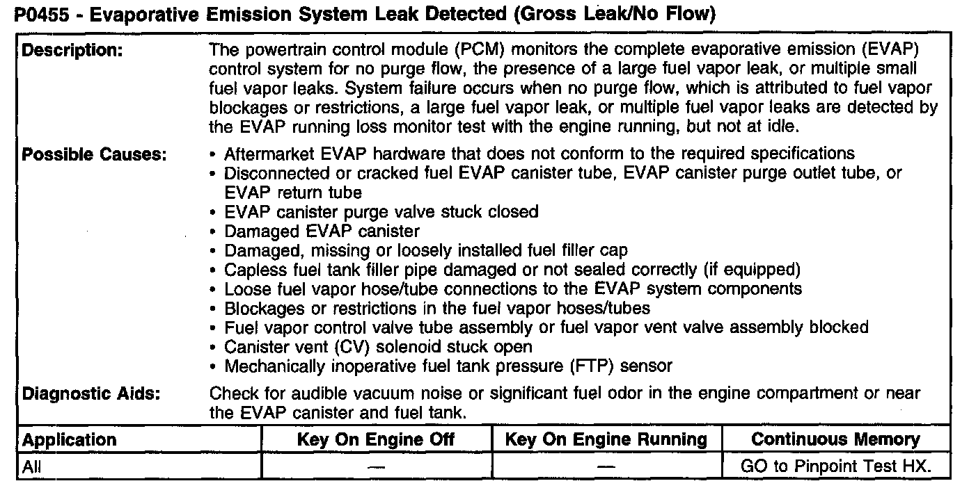 P0455 - Evaporative Emission System Leak Detected (Gross Leak/No Flow):