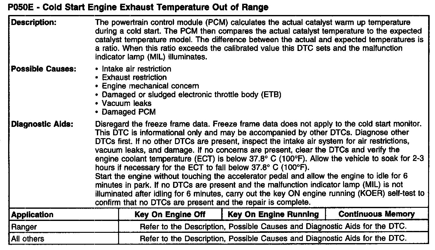 P050E - Cold Start Engine Exhaust Temperature Out Of Range (Part 1):