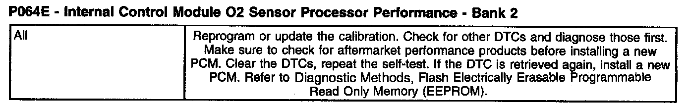 P064E - Internal Control Module O2 Sensor Processor Performance - Bank 2 (Part 1):