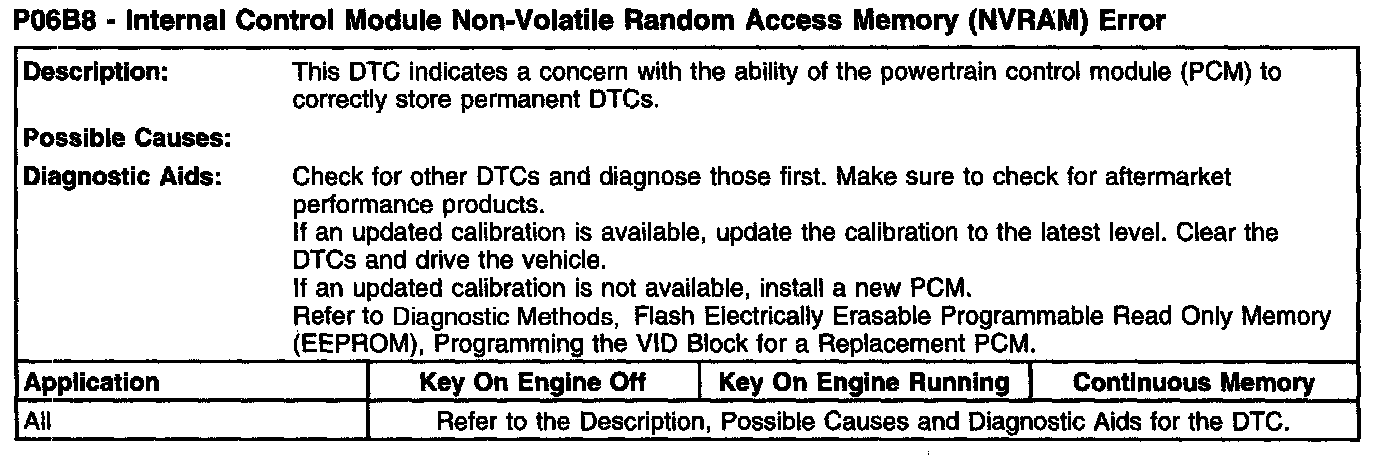 P06B8 - Internal Control Module Non-Volatile Random Access Memory (NVRAM) Error: