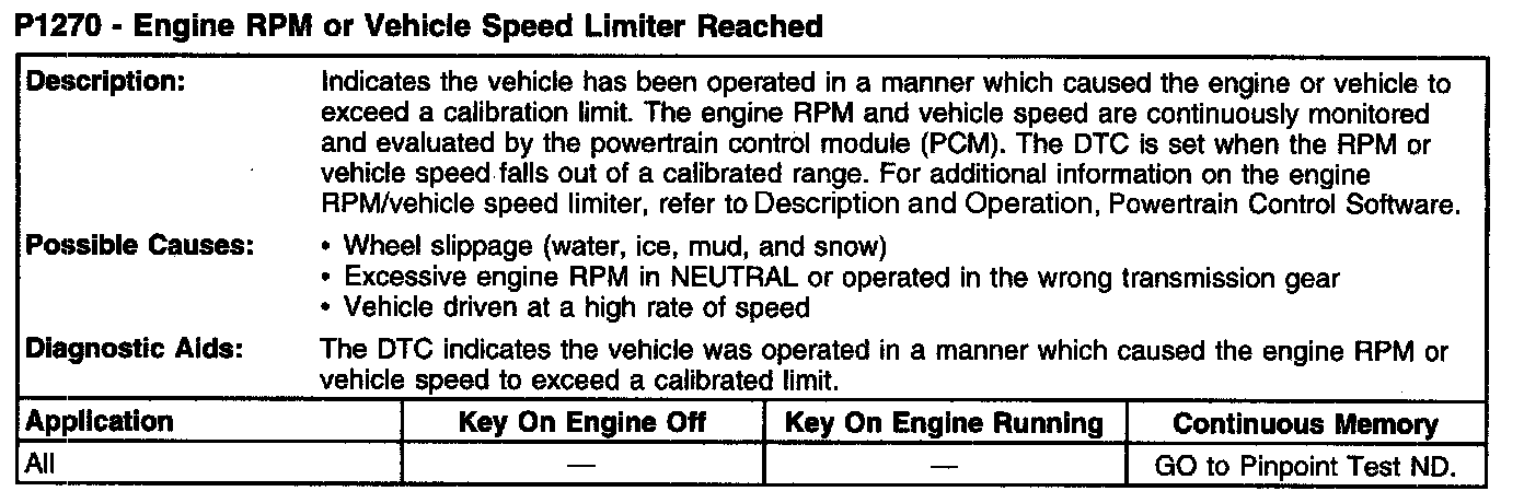 P1270 - Engine RPM Or Vehicle Speed Limiter Reached:
