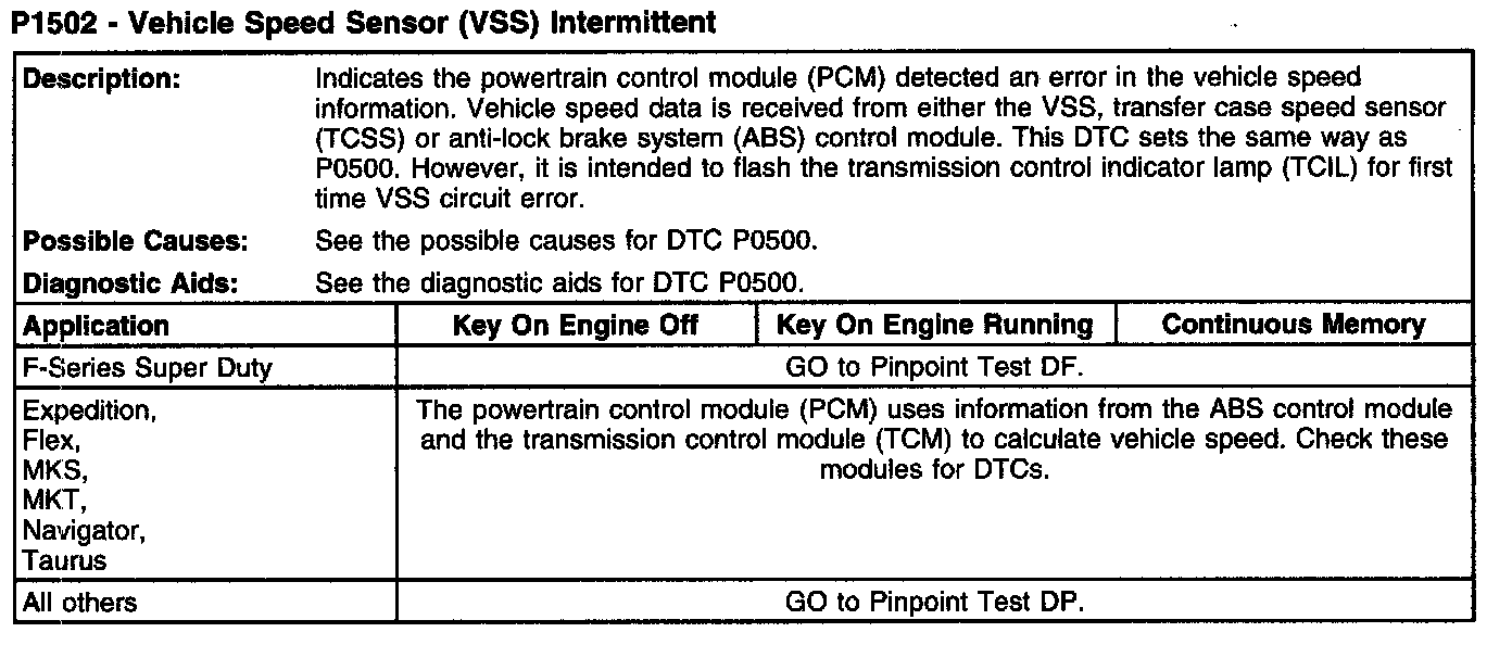 P1502 - Vehicle Speed Sensor (VSS) Intermittent: