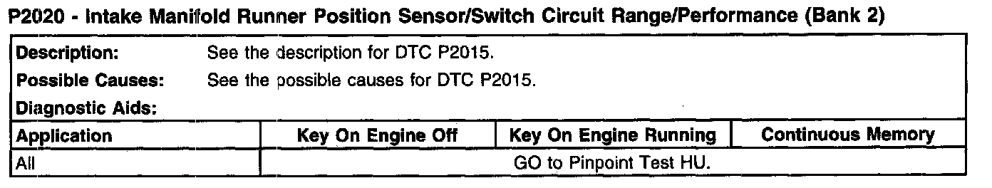 P2020 - Intake Manifold Runner Position Sensor/Switch Circuit Range/Performance (Bank 2):